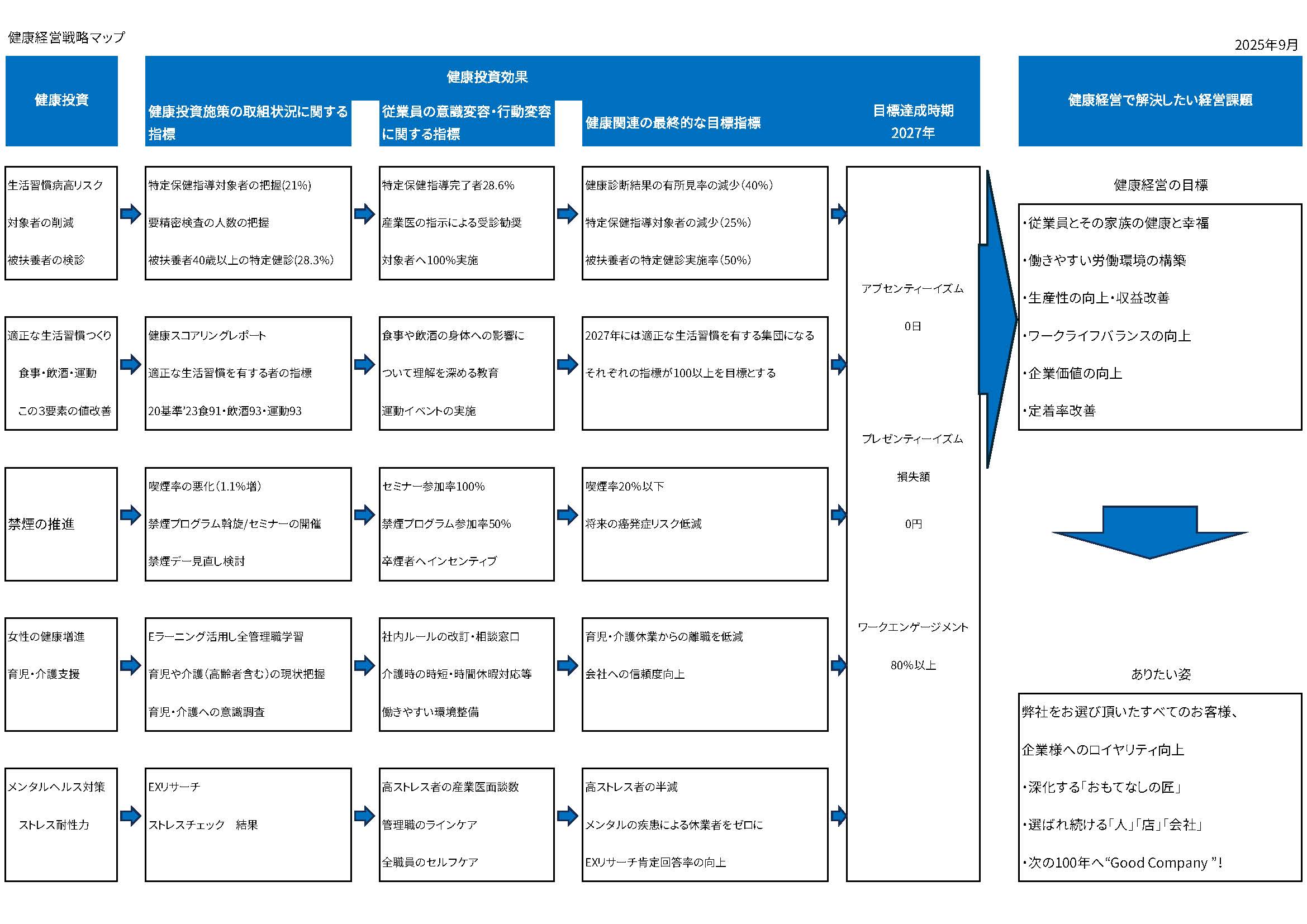 | 健康経営推進委員 | 各店舗・事業所の店長・部門長 店舗のリーダー(推進役) |