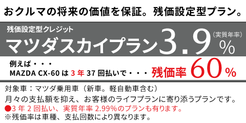 ※残価率については車種ごとに異なります。詳しくは以下車種ごとのお支払い例もしくはマツダクレジットサイトをご覧ください。