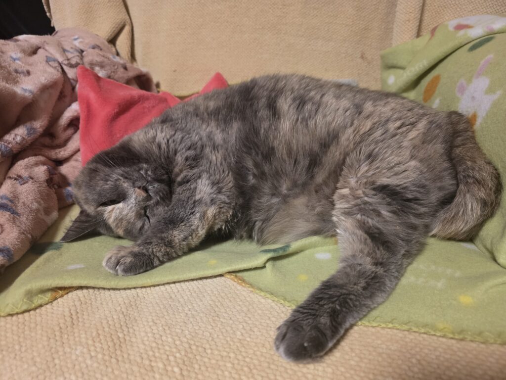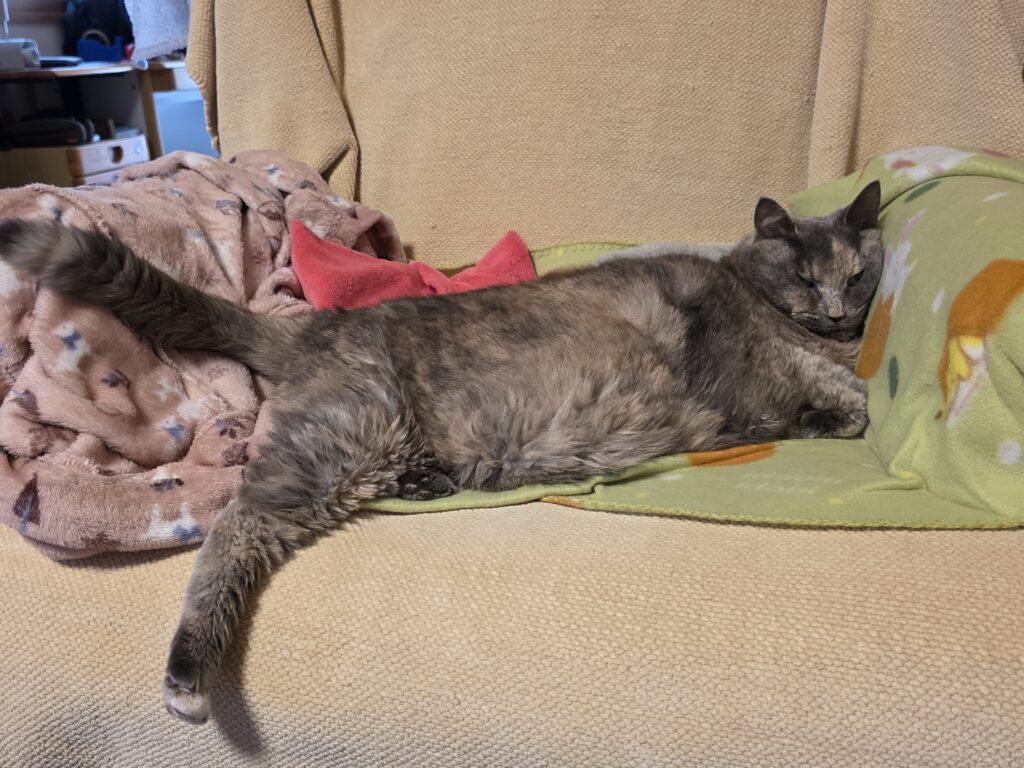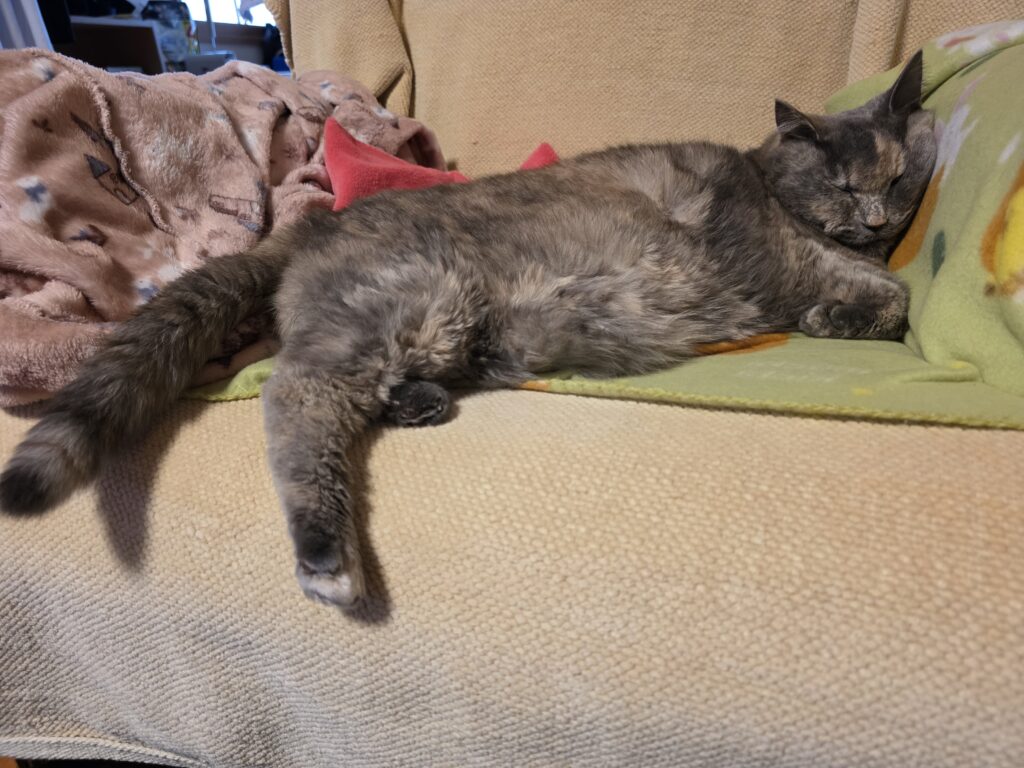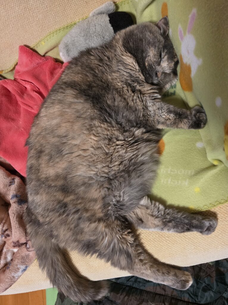ごはんとトイレだけ起きてきます!が、その間は定位置でずーっと寝ていますzzz...