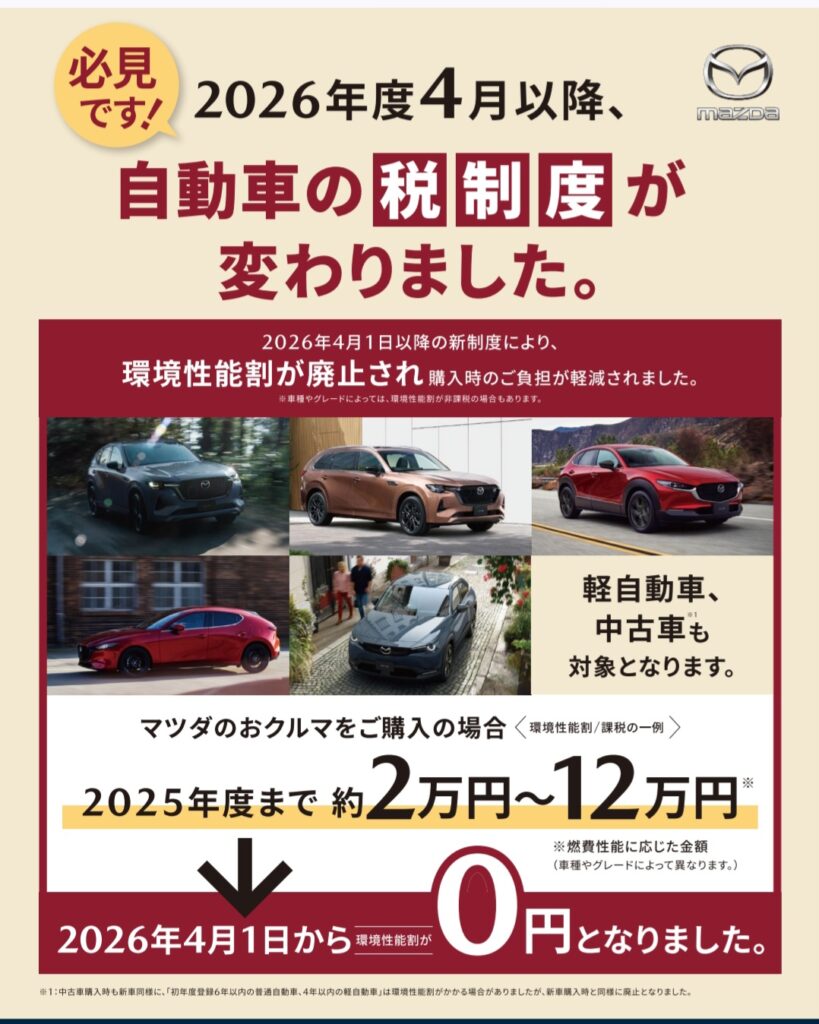 【環境性能割(自動車税)】という名のご負担いただいていました税金がなんと、『廃止』されました!