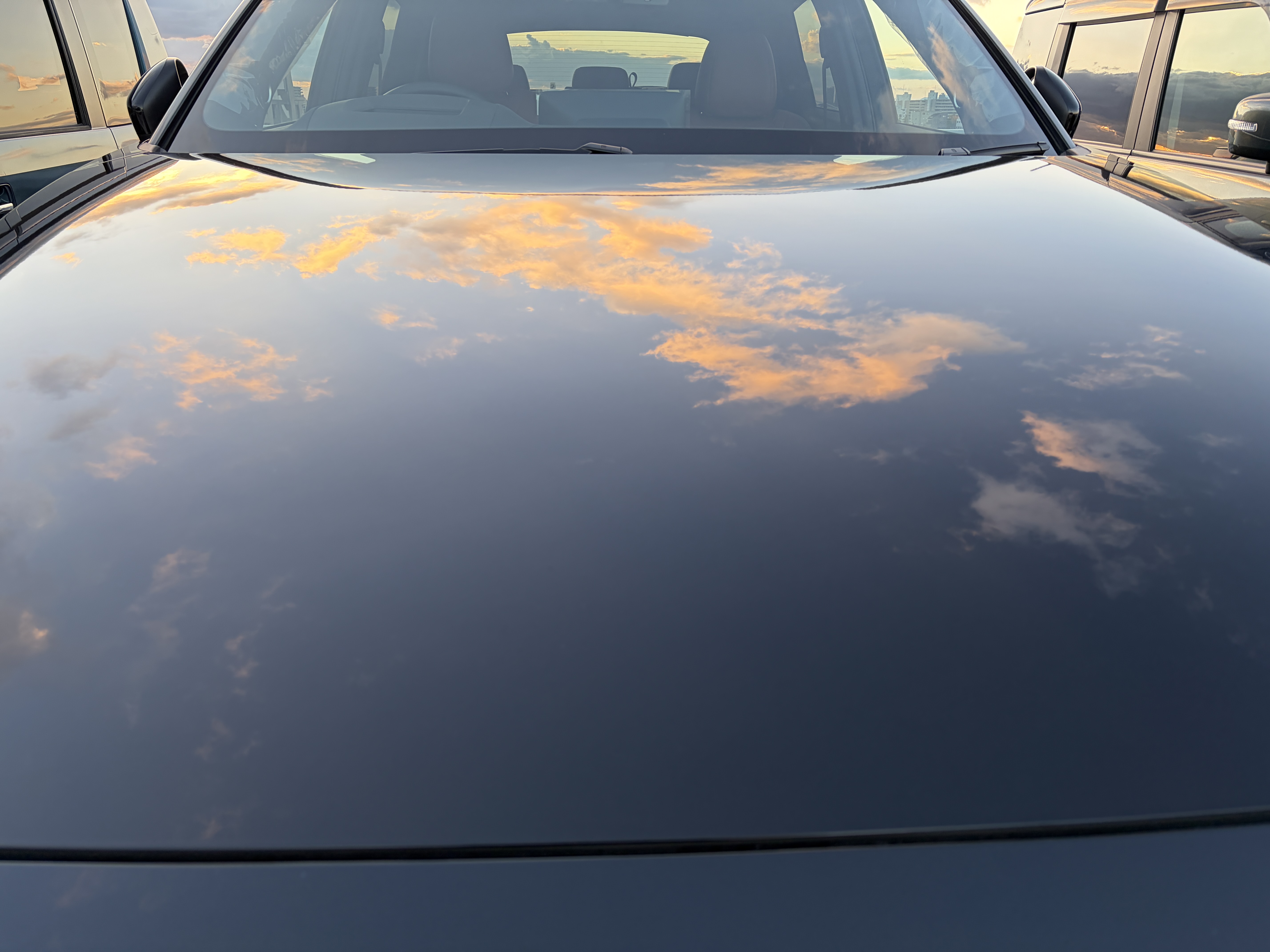 今回、ボンネットに映る空と雲の写真も撮影