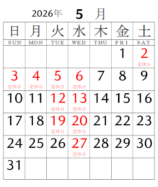5月2日(土)~6日(水)がお休みでございます