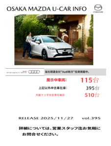 「大阪マツダU-CAR INFO」は隔週で発行しており、店頭にてもご覧いただけます。