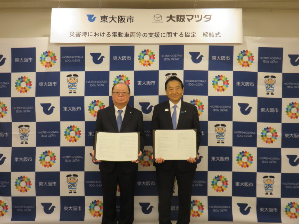 東大阪市(野田 義和市長)と「災害時における電動自動車等の支援に関する協定」を締結しました。