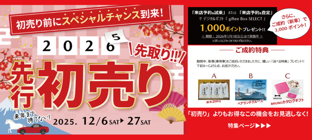 2025/12/06試乗又は査定でデジタルギフト1,000ポイントプレゼント!(2026年1月18日まで)
